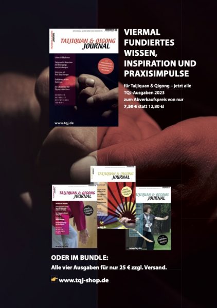 Alle vier Ausgaben des Taijiquan & Qigong Journals aus 2023 im Bundle zum Abverkaufspreis von nur 25,00 €. Mit zeitlosen Fachartikeln zu Taijiquan und Qigong, die nie an Aktualität verlieren.